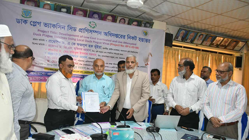 বাংলাদেশ কৃষি বিশ্ববিদ্যালয়ের (বাকৃবি) ভেটেরিনারি অনুষদ স্থানীয় হাঁস প্লেগ ভাইরাস ব্যবহার করে স্বল্পমূল্যের ডাক প্লেগ ভ্যাকসিন উন্নয়ন সম্পন্ন করেছে এবং ওই ভ্যাকসিনের সিড প্রানিসম্পদ অধিদপ্তরের নিকট হস্তান্তর করেছে।
