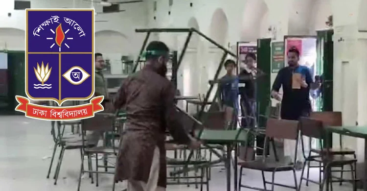 ঢাকা বিশ্ববিদ্যালয়ের (ঢাবি) মধুর ক্যান্টিনের চেয়ার-টেবিল ভাঙচুর চালিয়েছে এক ব্যক্তি। বিশ্ববিদ্যালয় কর্তৃপক্ষের ভাষ্য অনুযায়ী, ওই ব্যক্তি মানসিকভাবে অসুস্থ। পরে তাকে শাহবাগ থানায় হস্তান্তর করা হয়।