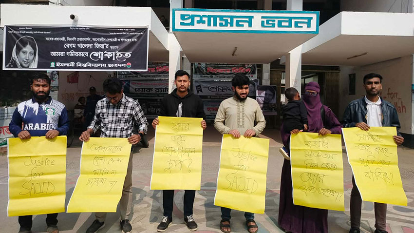 ইসলামী বিশ্ববিদ্যালয়ের (ইবি) আল কুরআন এন্ড ইসলামিক স্টাডিজ বিভাগের শিক্ষার্থী সাজিদ আবদুল্লাহ্ হত্যার বিচারের দাবিতে মানববন্ধন কর্মসূচি পালন করা হয়েছে।