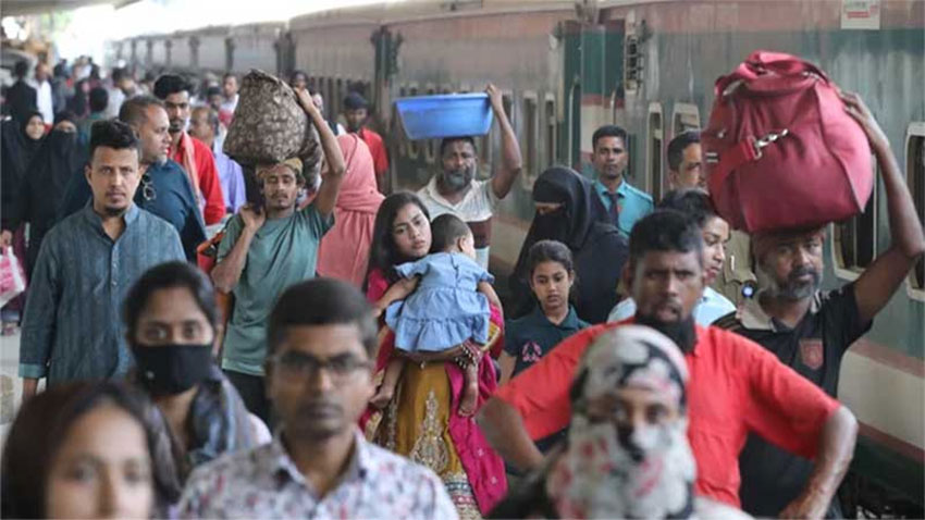 ছুটি শেষে কর্মস্থলে ফিরছে মানুষ, কমলাপুরে যাত্রীদের উপচে পড়া ভিড়