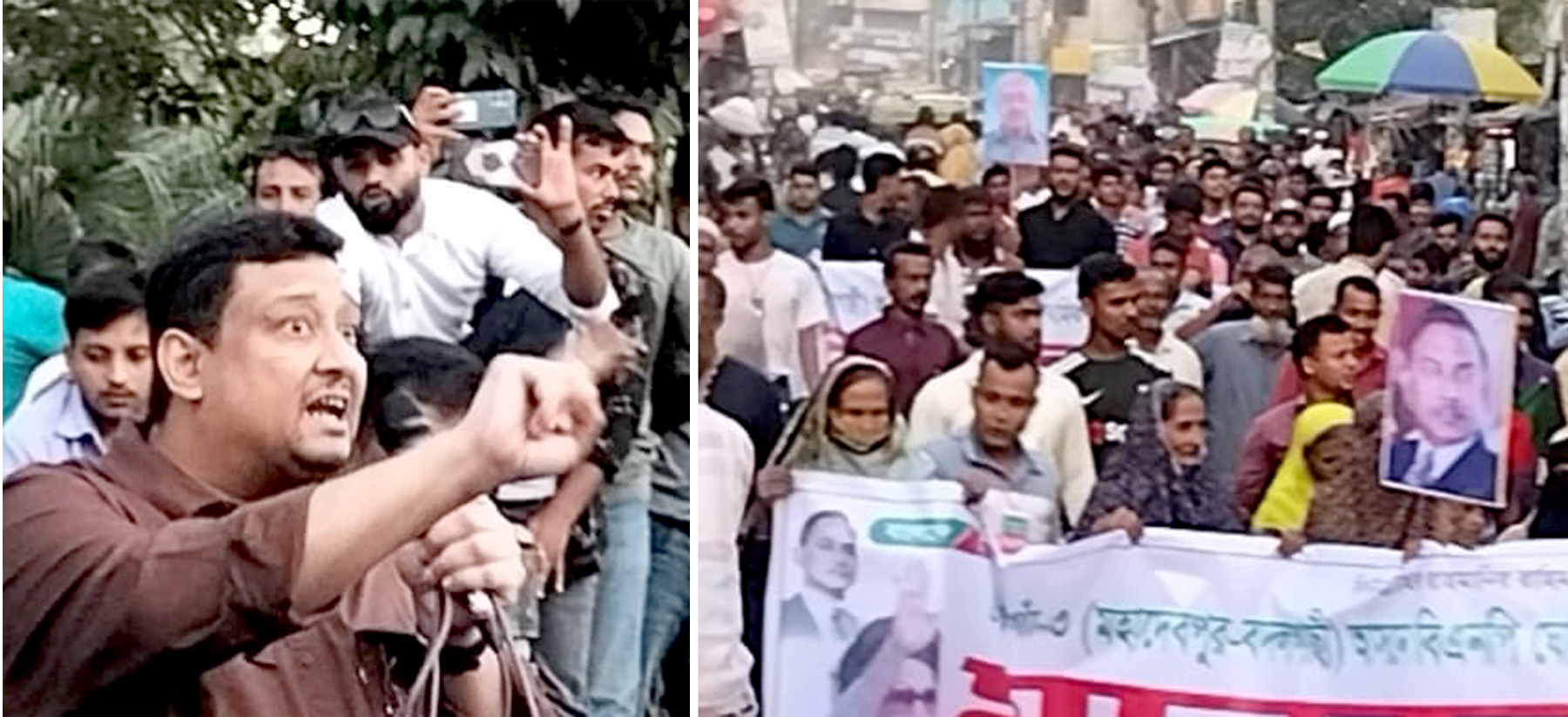 নওগাঁ-৩ (মহাদেবপুর-বদলগাছী) আসনে বিএনপির ঘোষিত ফজলে হুদা বাবুলের ধানের শীষের মনোনয়ন পরিবর্তনের দাবিতে কয়েক হাজার নারী-পুরুষ প্রায় দুই কিলোমিটার দীর্ঘ মানববন্ধন ও প্রতিবাদ সমাবেশ করেছে।