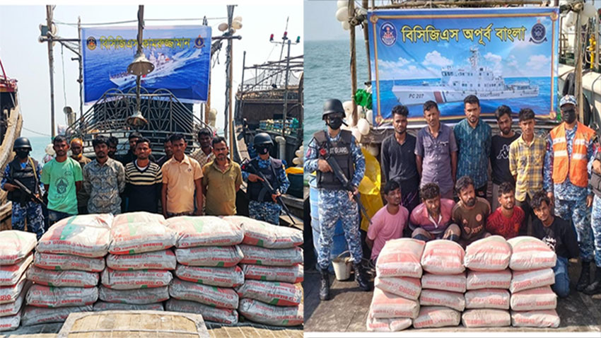 কোস্ট গার্ডের পৃথক ২টি অভিযানে মায়ানমারে পাচারকালে বিপুল পরিমাণ সিমেন্টসহ ১৮ পাচারকারী আটক।