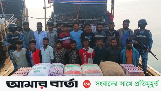 মায়ানমারে পাচারকালে বিপুল পরিমাণ সিমেন্ট ও নিত্য প্রয়োজনীয় খাদ্য দ্রব্যসহ ১৯ পাচারকারীকে আটক করেছে কোস্ট গার্ড।