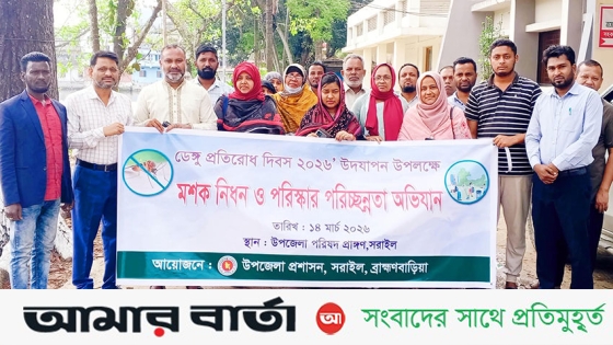 ব্রাহ্মণবাড়িয়ার সরাইলে ডেঙ্গু প্রতিরোধে দিবস ২০২৬ উদযাপন উপলক্ষে মশক নিধন ও পরিষ্কার পরিচ্ছন্নতা অভিযান শুরু করেছে উপজেলা প্রশাসন।