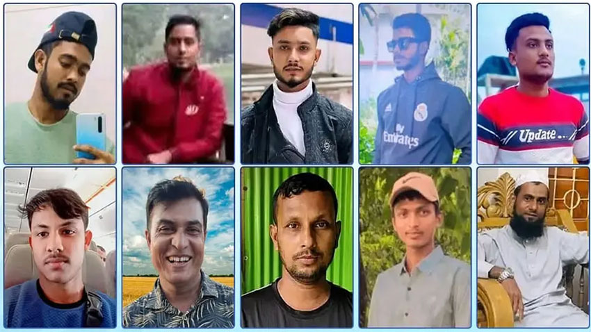 স্থানীয়ভাবে পরিবার, প্রতিবেশী ও জনপ্রতিনিধিদের সঙ্গে কথা বলে এ পর্যন্ত ১০ জনের পরিচয় নিশ্চিত হওয়া গেছে। তাঁরা হলেন দিরাই উপজেলার কুলঞ্জ ইউনিয়নের তারাপাশা গ্রামের আবু সরদারের ছেলে মো. নুরুজ্জামান সরদার ময়না (৩০), আবদুল গণির ছেলে সাজিদুর রহমান (২৮), ইসলাম উদ্দিনের ছেলে সাহান এহিয়া (২৫) ও একই উপজেলার রাজানগর ইউনিয়নের আবদুল মালেকের ছেলে মুজিবুর রহমান (৩৮); দোয়ারাবাজার উপজেলার কবিরনগর গ্রামের ফয়েজ উদ্দিনের ছেলে আবু ফাহিম, জগন্নাথপুর উপজেলার চিলাউড়া গ্রামের সোহানুর রহমান, টিয়ারগাঁও গ্রামের শায়েক আহমেদ, চিলাউড়া কবিরপুর গ্রামের মো. নাঈম, পাইলগাঁও গ্রামের আমিনুর রহমান, ইছগাঁও গ্রামের মোহাম্মদ আলী।