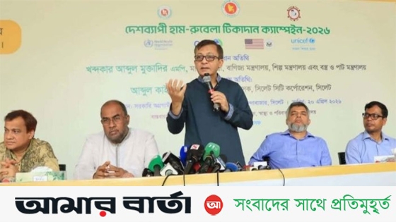 সিলেটে মাসব্যাপী হাম-রুবেলা টিকাদান ক্যাম্পেইনের উদ্বোধন অনুষ্ঠানে বাণিজ্যমন্ত্রী।