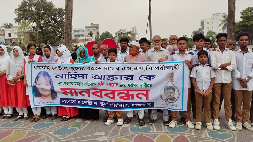 ধামরাইয়ে এসএসসি পরীক্ষার্থী হত্যাকাণ্ডের আসামির ফাঁসির দাবিতে মানববন্ধন