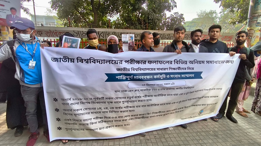 মানববন্ধনে তারা জানান, ২০১৯–২০ সেশনের ২০২৩ সালের অনার্স চতুর্থ বর্ষ পরীক্ষার ফলাফল প্রকাশের পর বহু শিক্ষার্থী এক ও দুই বিষয়ে অকৃতকার্য হওয়ায় চরম হতাশা ও অনিশ্চয়তার মধ্যে পড়েছেন। ভালো পরীক্ষা দিয়েও একই বিষয়ে বারবার অকৃতকার্য হওয়া, এক বা দুই বিষয়ে ফেল এবং ফলাফলে অসামঞ্জস্যতা তাদের মধ্যে গভীর মানসিক চাপ সৃষ্টি করেছে। এতে অনেকের শিক্ষা ও কর্মজীবন বাধাগ্রস্ত হচ্ছে।