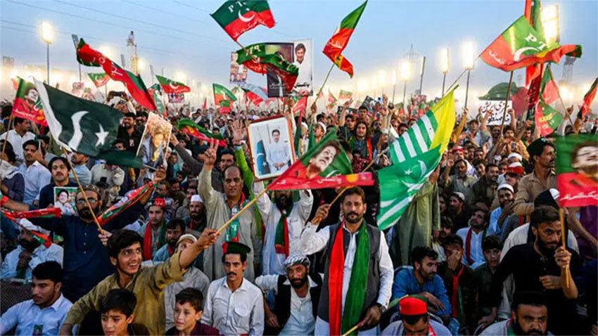 ইমরান খানের মুক্তির দাবিতে সমর্থকদের বিক্ষোভ। ছবি: এএফপি