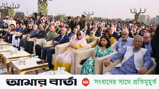 নবনির্বাচিত প্রধানমন্ত্রী তারেক রহমান ও মন্ত্রিসভার অন্য সদস্যদের শপথগ্রহণ অনুষ্ঠান প্রত্যক্ষ করেছেন বিদায়ী অন্তর্বর্তীকালীন সরকারের প্রধান উপদেষ্টা প্রফেসর মুহাম্মদ ইউনূস।