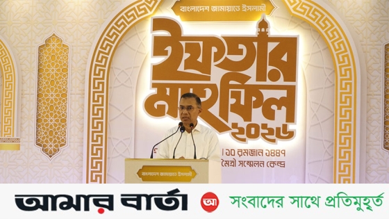 প্রধানমন্ত্রী তারেক রহমান জামায়াতে ইসলামীর ইফতার মাহফিলে যোগ দিয়ে বলেছেন, আমাদের রাজনীতি হবে দেশের মানুষের ভাগ্য পরিবর্তনের জন্য।
