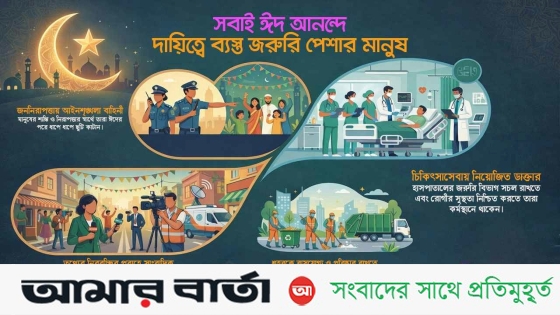 এভাবে দেশের শান্তি, স্বাস্থ্য, নিরাপত্তা এবং পরিচ্ছন্নতার পেছনে দায়িত্বশীলদের ত্যাগ থাকায় সাধারণ মানুষ নির্বিঘ্নে ঈদ উদযাপন করতে পারে। তাঁদের এ অবদান উৎসবের আনন্দকে আরও সমৃদ্ধ করে।
