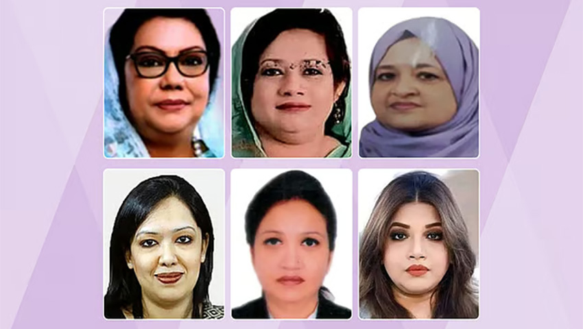 আফরোজা খানম, ইসরাত সুলতানা ইলেন ভুট্টো, তাহসিনা রুশদীর, রুমিন ফারহানা, ফারজানা শারমিন ও শামা ওবায়েদ ইসলাম (ওপরের সারিতে বাম দিক থেকে)।