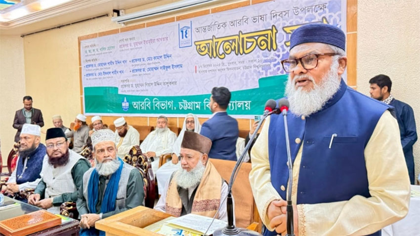 বুধবার (১৭ ডিসেম্বর) বুধবার দুপুরে চট্টগ্রাম বিশ্ববিদ্যালয়ের ব্যবসায় প্রশাসন অনুষদ মিলনায়তনে আন্তর্জাতিক আরবি ভাষা দিবস-২০২৫ উপলক্ষ্যে আয়োজিত আলোচনা সভায় প্রধান অতিথির বক্তব্যে তিনি এসব কথা বলেন। চবির আরবি বিভাগ এ আলোচনা সভার আয়োজন করে।