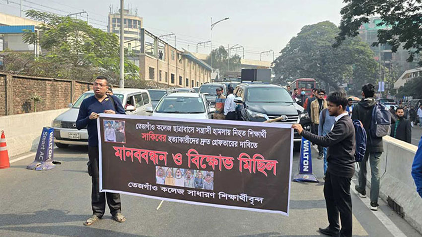 সহপাঠী হত্যার বিচার চেয়ে রাস্তায় তেজগাঁও কলেজ শিক্ষার্থীরা