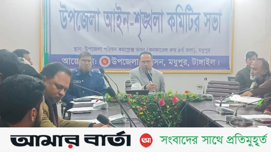 টাঙ্গাইলের মধুপুরে উপজেলা প্রশাসনের উদ্যোগে মাসিক আইনশৃঙ্খলা কমিটির সভা অনুষ্ঠিত হয়েছে।
