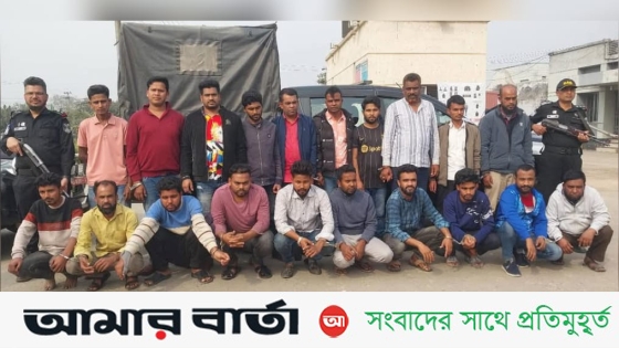 আটক ব্যক্তিরা হলেন- মো. মুস্তাফিজুর রহমান (৪৫), মো. মোতাহার হোসেন (২৭), মো. মিজানুর রহমান (৩০), মো. রনি (২৬), মো. বাদল মিয়া (৪৭), মো. হৃদয় মিয়া (২৫), মো. ফয়সাল (২২), আব্দুর রহমান (২৫), মো. হাফিজ হোসেন (৩০), মো. সাগর আহমেদ (৩৫), মো. শামিম মিয়া (৩১), মো. রাফসান (২৩), মো. মাসুদ রানা (৩৮), মো. রাসেল মিয়া (৩২), মো. শাফায়াতুল খালেক সাইফুল (৩৮), মো. অজুল মিয়া হৃদয় (২৫), মো. নাদিম মিয়া (২৮), মো. ইমন (২০), মো. সেলিম মজুমদার ও মো. মাহফুজ।