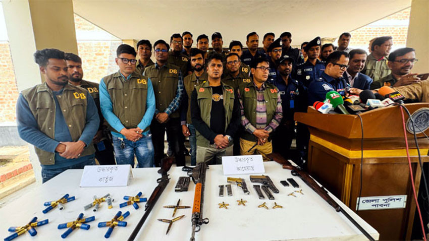 পুলিশ সুপার জানান, গোপন সংবাদের ভিত্তিতে গোয়েন্দা পুলিশের একটি দল ঈশ্বরদীর বাঘইল থেকে শাহিন নামে এক যুবককে আগ্নেয়াস্ত্র ও গুলিসহ আটক করে। পরে তার স্বীকারোক্তি অনুযায়ী হযরত ও খোকন নামে আরও দুজনকে আটকের পর ঈশ্বরদীর বিভিন্ন এলাকায় অভিযান চালিয়ে একটি স্বয়ংক্রিয় এসএলআর, দুটি বিদেশি রিভলবার, একটি পয়েন্ট টুটু রাইফেল ও একনলা বন্দুক এবং বিপুল পরিমাণ গুলি উদ্ধার করা হয়েছে।