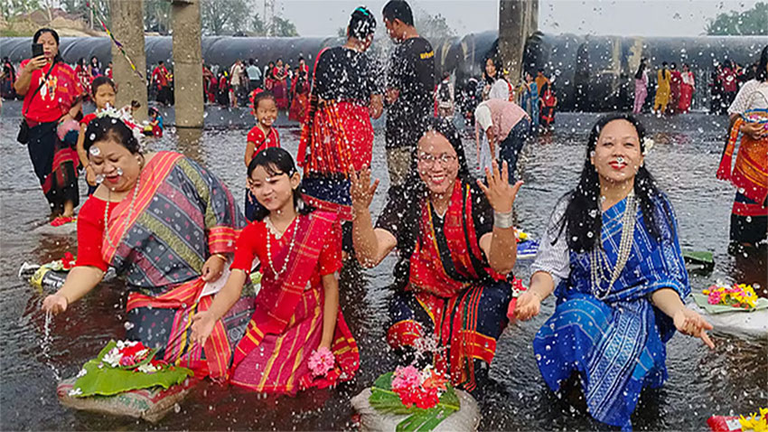 নদীতে ফুল ভাসিয়ে বিজু উৎসব শুরু