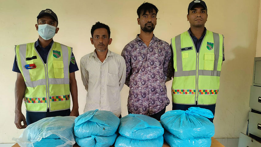 খাঁটিহাতা হাইওয়ে থানা কর্তৃক ৮ কেজি গাঁজাসহ দুই মাদক কারবারি গ্রেপ্তার