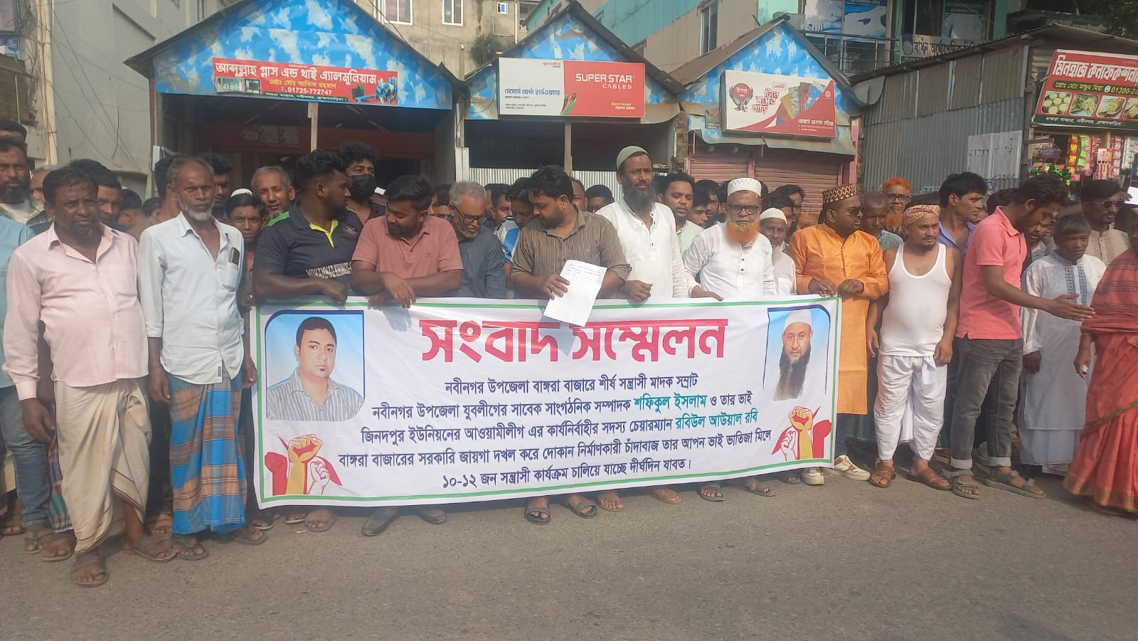 শুক্রবার (২৪ এপ্রিল) বিকালে বাঙ্গরা বাজার কমিটি আয়োজিত এই সংবাদ সম্মেলনে লিখিত বক্তব্যে বক্তারা জানান,বিগত আওয়ামী লীগ সরকারের আমল থেকেই রবি চেয়ারম্যান ও তার ভাই শফিক বাঙ্গরা বাজারের সরকারি জায়গা দখল বাণিজ্য করছেন।