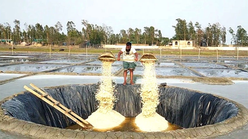 কক্সবাজারের কুতুবদিয়ায় শেষমুহুর্তেও লবণ উৎপাদনে ব্যস্ত চাষীরা। কেউ উৎপাদিত লবণ গর্তে ফেলছে, আবার কেউ মাঠেই লবণ তুলছে। চলতি মৌসুমে কিছুদিন জ্বালানি সংকটের অজুহাতে তেলের বাড়তি দাম গুনতে হয়েছে স্থানীয় প্রান্তিক চাষীদের। এছাড়াও শ্রমিকের মজুরি, পানি ও পলিথিনসহ লবণ উৎপাদনের সকল সরঞ্জামের দাম বেশি। এতে চরম ক্ষুব্ধ লবণ চাষীরা। তারা বলেছেন, সব কিছুরই দাম বাড়লেও লবণ বিক্রি করতে গেলেই সস্তা।