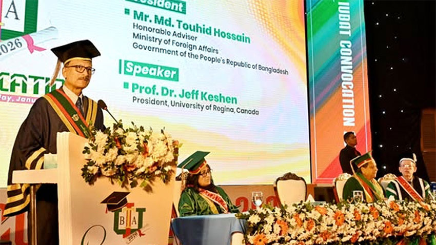 সোমবার (২৬ জানুয়ারি) রাজধানীর শেরেবাংলা নগরে অবস্থিত বাংলাদেশ-চায়না মৈত্রী সম্মেলন কেন্দ্রে ‘ইন্টারন্যাশনাল ইউনিভার্সিটি অব বিজনেস এগ্রিকালচার অ্যান্ড টেকনোলজি (আইইউবিএটি)’-এর ৯ম সমাবর্তনে রাষ্ট্রপতির প্রতিনিধি হিসেবে সভাপতির বক্তব্যে তিনি এসব কথা বলেন।