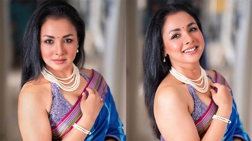 ছবিতে রুনা খানকে দেখা গেছে অত্যন্ত আধুনিক ও আভিজাত্যপূর্ণ লুকে। পরেছেন নীল ও বেগুনি রঙের একটি জমকালো শাড়ি, ম্যাচিং স্লিভলেস সিকুইন ব্লাউজ; যা তাকে দিয়েছে এক অনন্য মাত্রা।