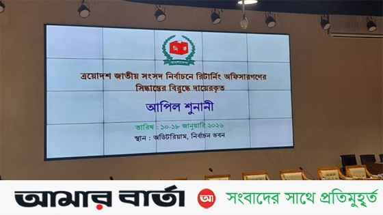 আসন্ন ত্রয়োদশ জাতীয় সংসদ নির্বাচনে রিটার্নিং কর্মকর্তাদের দেওয়া সিদ্ধান্তের বিরুদ্ধে দায়েরকৃত আপিল আবেদনের শুনানি শুরু হয়েছে।