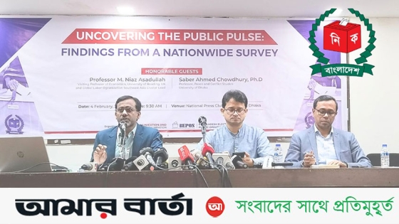 বুধবার (৪ ফেব্রুয়ারি) রাজধানীর জাতীয় প্রেসক্লাবের তফাজ্জল হোসেন মানিক মিয়া হলে ‘আনকাভারিং দ্য পাবলিক পালস: এ নেশনওয়াইড সার্ভে’ শীর্ষক এক গবেষণা প্রতিবেদনে এসব তথ্য জানানো হয়।