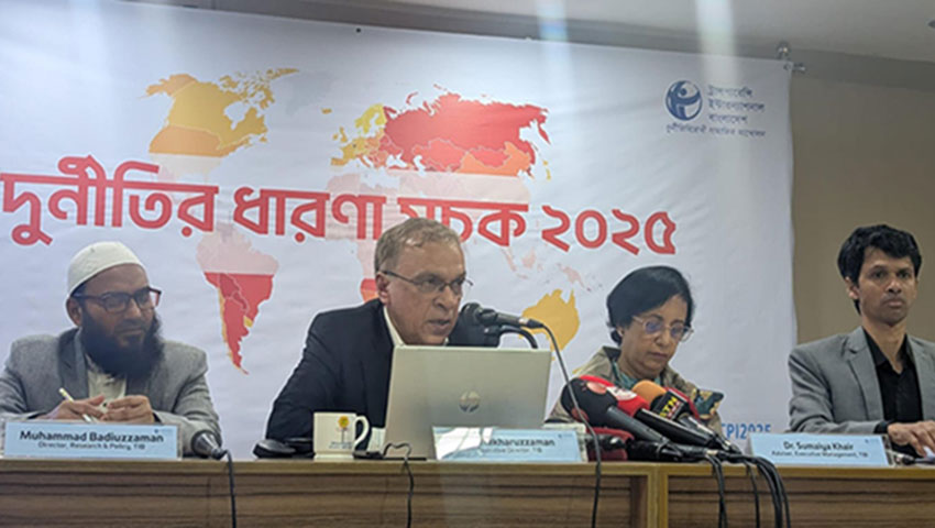 মঙ্গলবার (১০ ফেব্রুয়ারি) সকালে রাজধানীর ধানমন্ডির মাইডাস সেন্টারে ট্রান্সপারেসি ইন্টারন্যাশনালের করাপশন পারসেপশন ইনডেক্স (সিপিআই) বা ‘দুর্নীতির ধারণা সূচক ২০২৫’ প্রকাশ করে ট্রান্সপারেন্সি ইন্টারন্যাশনাল বাংলাদেশ (টিআইবি)। টিআইবির নির্বাহী পরিচালক ইফতেখারুজ্জামান এ তথ্য তুলে ধরেন।