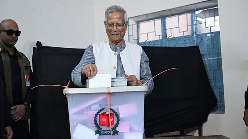নির্বাচনে সকাল ১০টার পর রাজধানীর গুলশান মডেল স্কুল অ্যান্ড কলেজ কেন্দ্রে ত্রয়োদশ সংসদ নির্বাচন ও জুলাই জাতীয় সনদের ওপর অনুষ্ঠিতব্য গণভোটে নিজের ভোট দিয়েছেন অন্তর্বর্তী সরকারের প্রধান উপদেষ্টা প্রফেসর ড. মুহাম্মদ ইউনূস।