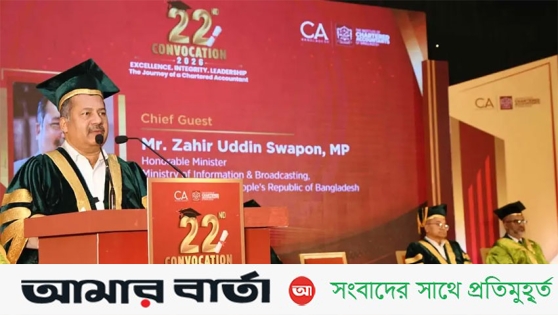 নবীন সনদপ্রাপ্তদের উদ্দেশ্যে তথ্য ও সম্প্রচার মন্ত্রী জহির উদ্দিন স্বপন বলেছেন, বর্তমান সময় চ্যালেঞ্জ ও সম্ভাবনার যুগ। এই চ্যালেঞ্জকে গ্রহণ করে নিজেদের দক্ষতা, দেশ এবং পেশাকে সমৃদ্ধ করার দায়িত্ব তাদের ওপর বর্তায়।