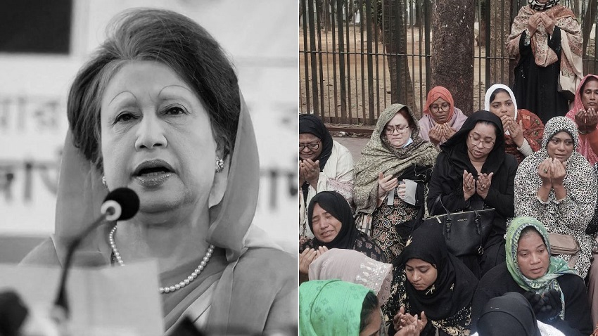 সরেজমিনে দেখা যায়, গুলশানে বিএনপির চেয়ারপারসনের কার্যালয়ের ঠিক উল্টো পাশে সারিবদ্ধ হয়ে বসেন নারী নেতাকর্মীরা। একপর্যায়ে খালেদা জিয়ার আত্মার মাগফেরাত মোনাজাত তুলে মহান আল্লাহর দরবারে প্রার্থনা করেন তারা। এ সময় কান্নায় ভেঙে পড়েন সবাই। এ সময় সাবেক এই প্রধানমন্ত্রীর স্মৃতিচারণ করে বেশিরভাগ নারীকেই দোয়া পড়তে শোনা যায়।