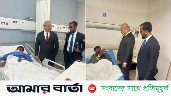 আহতদের শারীরিক অবস্থা ও চিকিৎসার খোঁজ নিতে আজ রোববার (১ মার্চ) কুয়েতের ফারওয়ানিয়া হাসপাতালে যান কুয়েতে নিযুক্ত বাংলাদেশের রাষ্ট্রদূত মেজর জেনারেল সৈয়দ তারেক হোসেন। তিনি চিকিৎসাধীন প্রবাসীদের সঙ্গে কথা বলেন এবং তাদের সার্বিক অবস্থার বিষয়ে চিকিৎসকদের থেকে নেন।