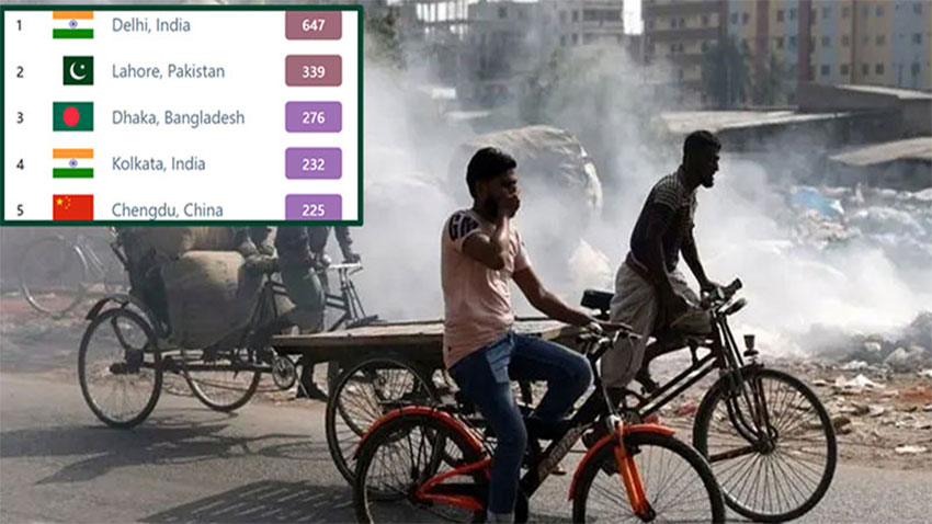 আইকিউএয়ারের দেওয়া তথ্যে দেখা যায়, বিশ্বের দূষিত শহরগুলোর তালিকায় ৩৩৯ স্কোর নিয়ে দ্বিতীয় স্থানে রয়েছে পাকিস্তানের লাহোর, ২৩২ স্কোর নিয়ে চতুর্থ স্থানে রয়েছে ভারতের কলকাতা, পঞ্চম স্থানে রয়েছে চীনের চ্যাংডু, স্কোর ২২৫।